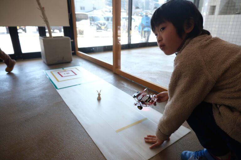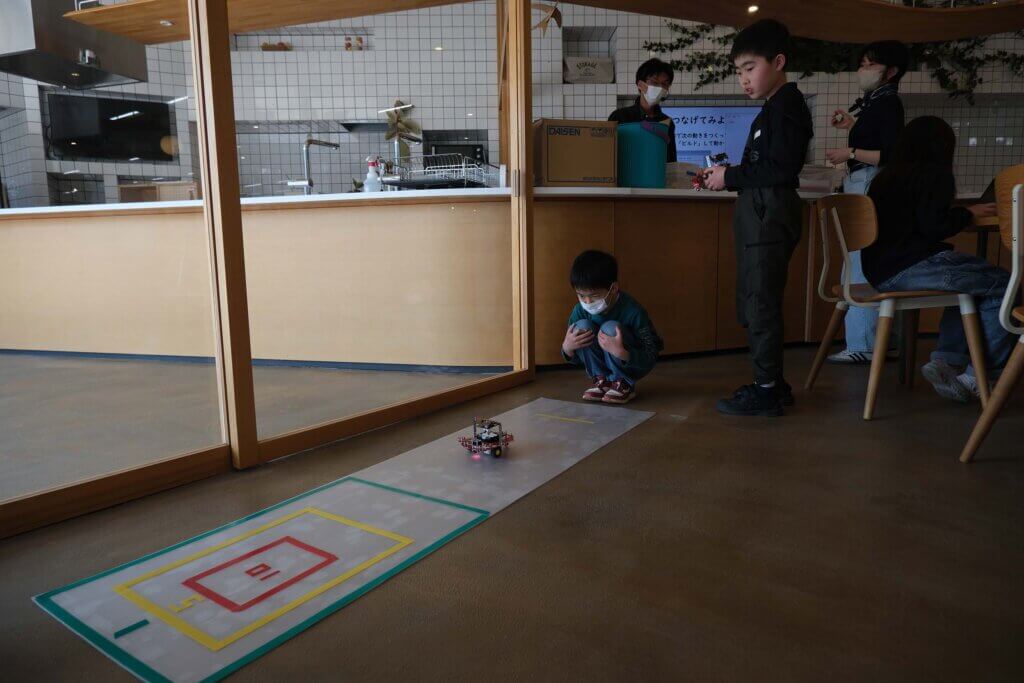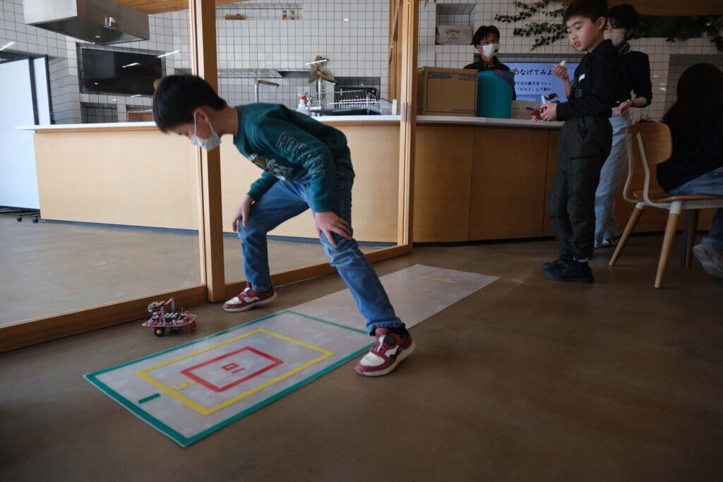 その後は、楽しいゲームタイム!用意してある的を目指して、ロボットを停止させられるかを競いました。