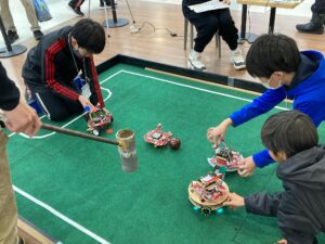 終盤には、昨年から活動しており、今年も隣接するスペースで思い思いのマシン開発を続けている1期生の子たちも参戦して、親善試合。